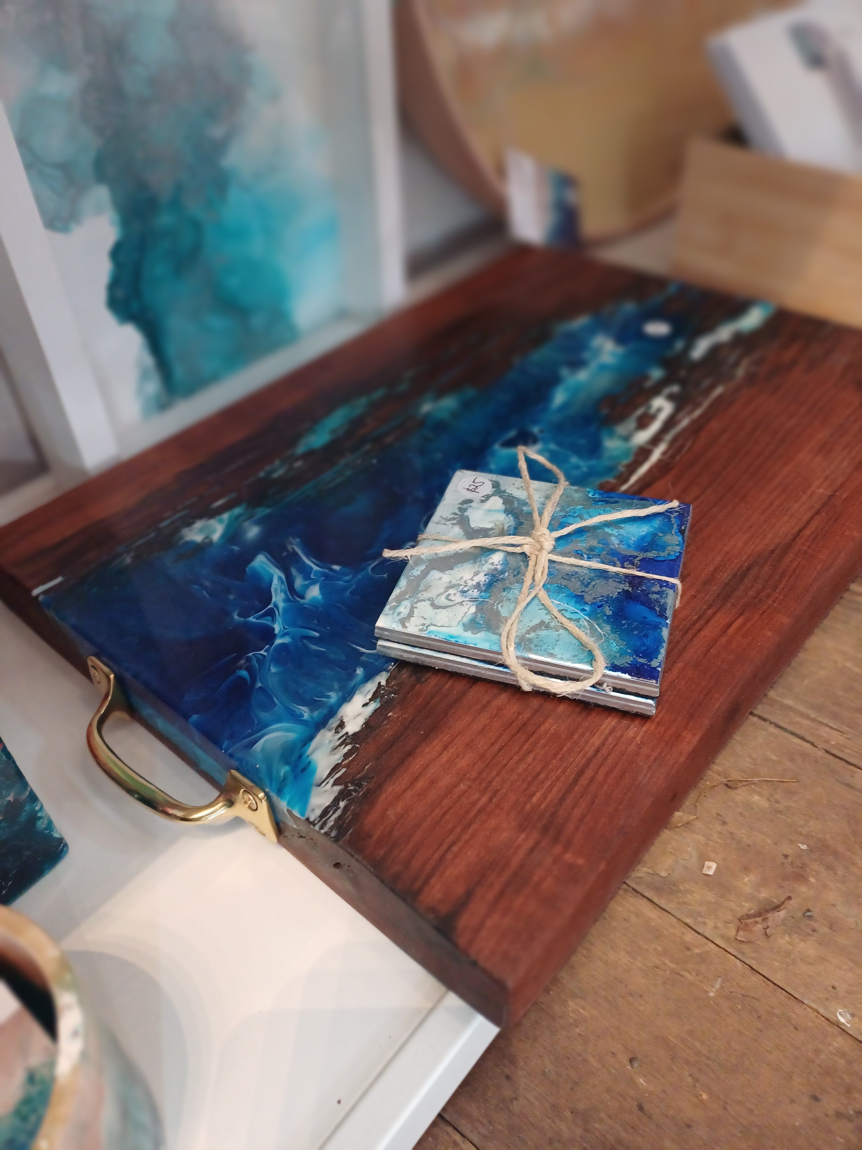Creating beautiful abstract sea scapes and landscapes for your interiors. Using various mediums combined with resin and experimenting with colour, form and composition to really bring the Australian land and sea to life.
